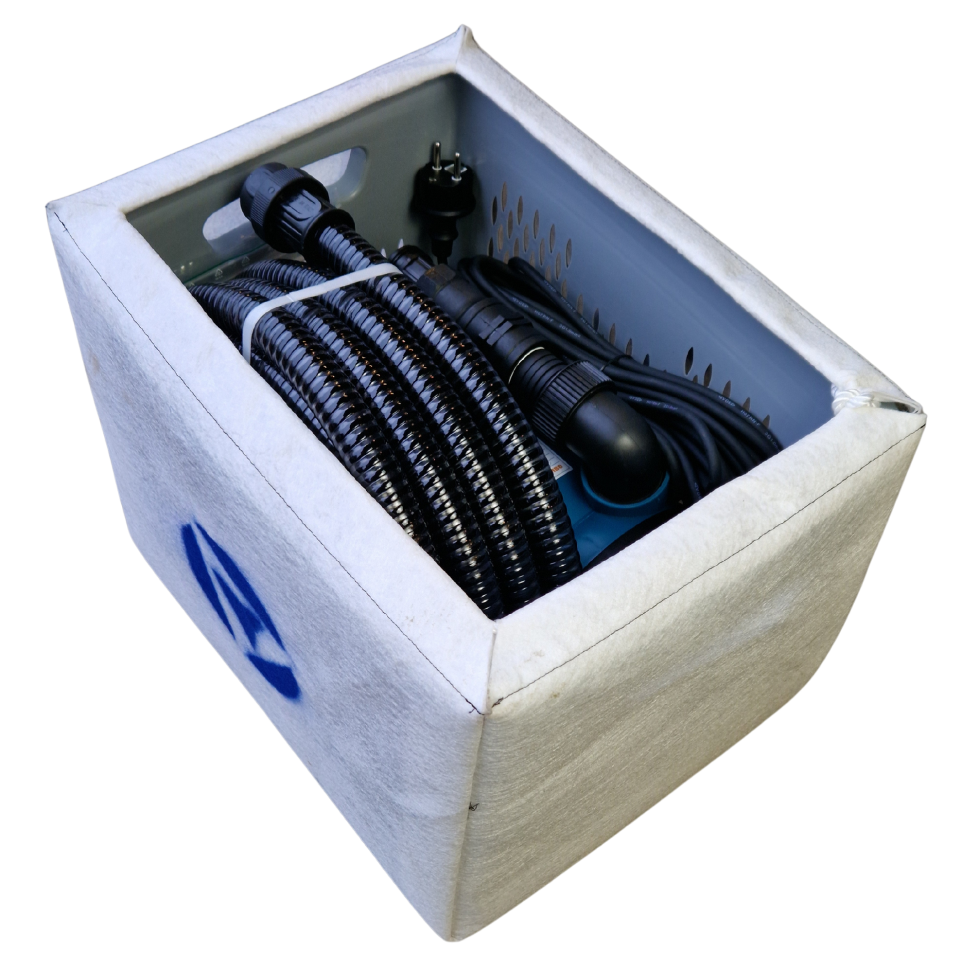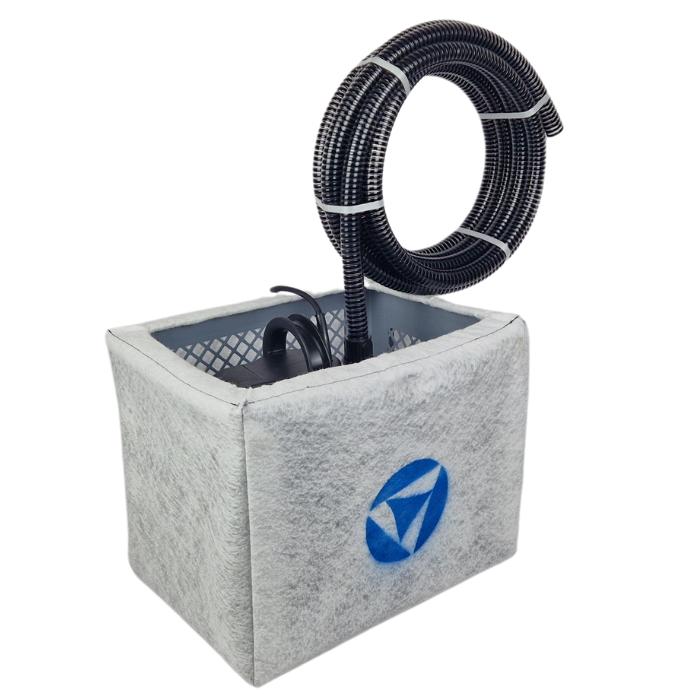 De krat is gemakkelijk in te graven in bijvoorbeeld een kruipruimte, kelder of tuin. Het filterdoek waarmee de pompkrat omhuld is zorgt er voor dat de pomp alleen water wegpompt en dat het zand achterblijft. De Pompkrat dient altijd iets boven de grond uit te steken om te voorkomen dat er zand over de rand spoelt. Wij adviseren om de Pompkrat op 31cm diepte in te graven zodat er een opstaande rand van ongeveer 2 cm is.