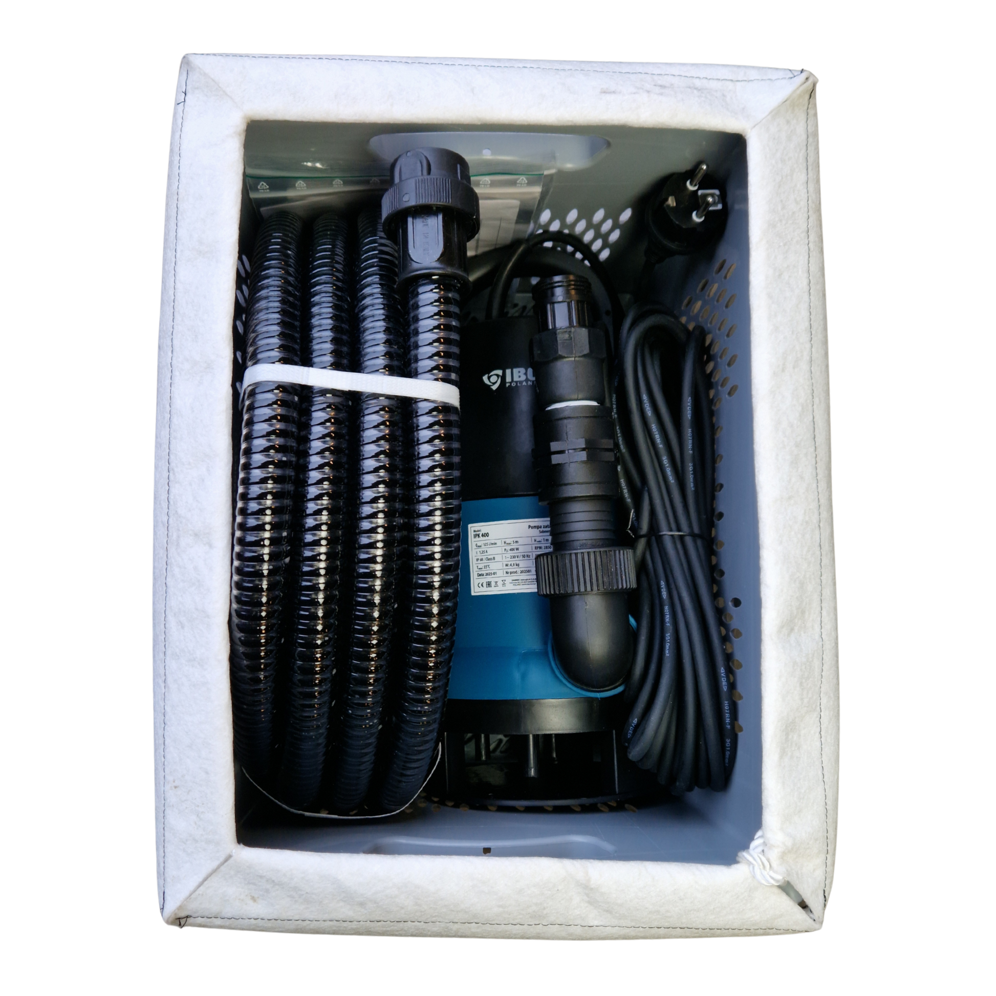 De Pompkrat Compact is uitgerust met een degelijke dompelpomp van het merk IBO. De pomp heeft een automatische ingebouwde vlotter die er voor zorgt dat hij vanzelf aan slaat bij hoog water. Wij bieden ook een variant aan met een vlakzuiger pomp die het water nog dieper uit de krat kan weg pompen.